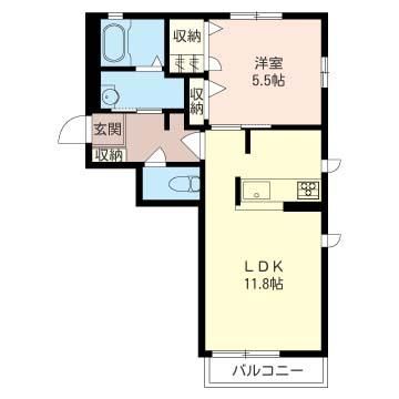 1LDK( 洋室5.5畳/LDK11.8畳 ) |