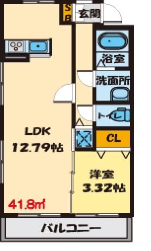 物件の広さは41.8m 2で人気の1LDKです。