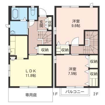 2LDK( 洋室9.6畳/洋室7.5畳/LDK11.8畳 ) |